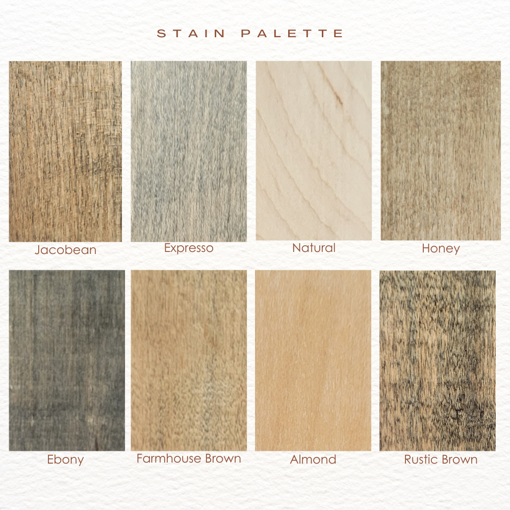We believe that the perfect frame is one that reflects your personal style and complements your artwork or photographs beautifully. That's why we're excited to offer you the ability to choose your own stain for our custom frames. Our selection of high-quality stains allows you to match the frame to your decor, artwork, or simply to create a look that's uniquely yours.